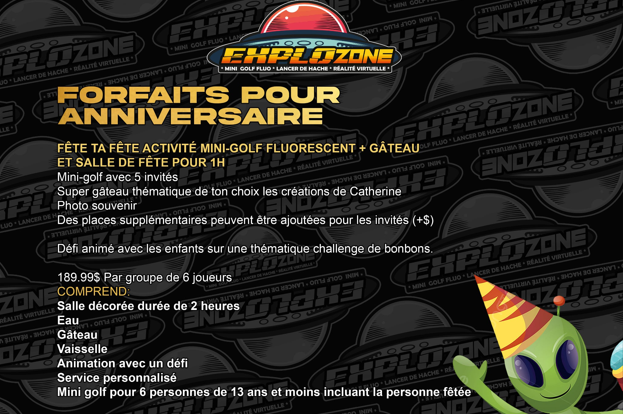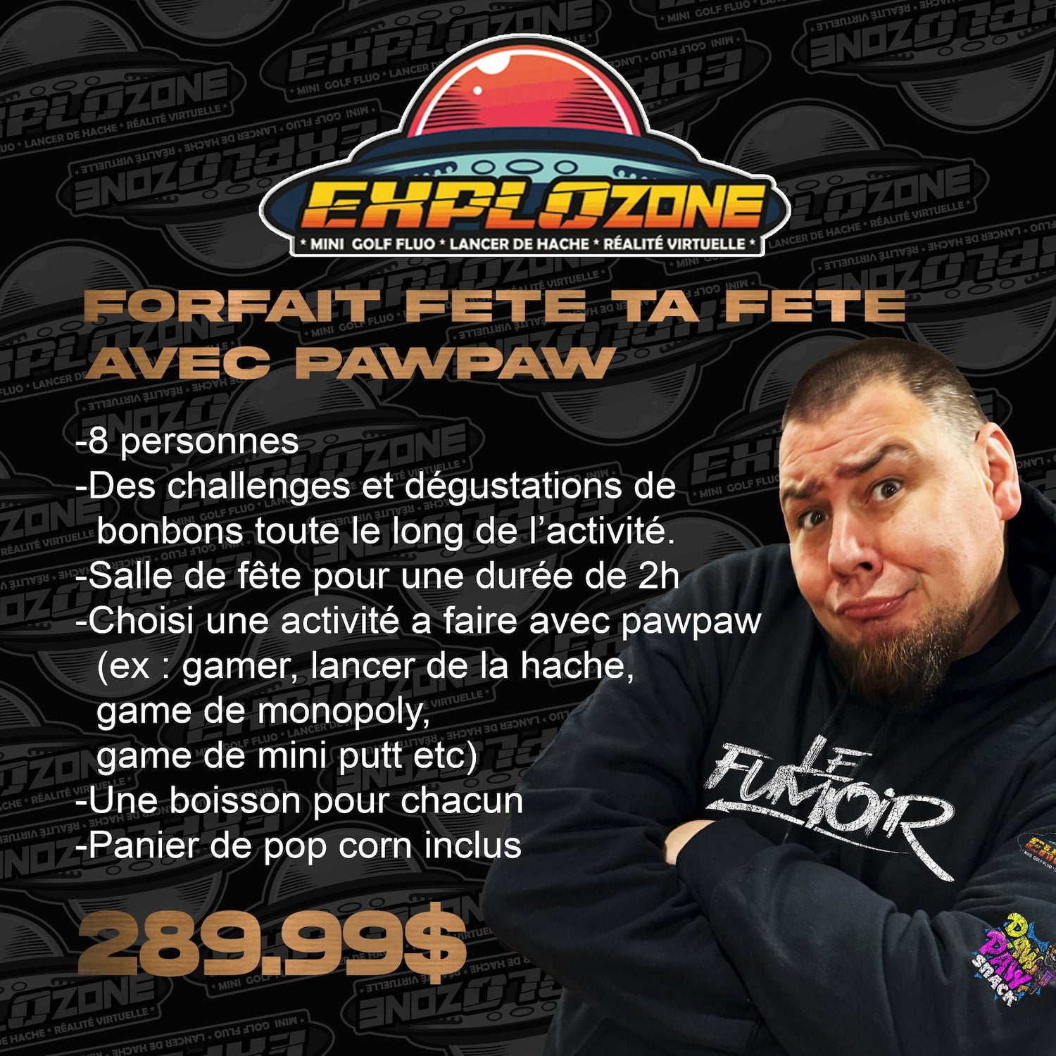 Veuillez noter que ce forfait comprend le mini-golf pour 8 personnes et des activités supplémentaires avec Pawpaw!